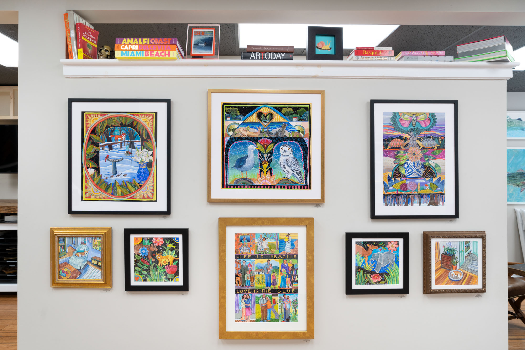 Sally Dean is a Marshfield, Massachusetts native with her roots firmly planted in the arts. With an artful lineage as far back as her grandmother’s fashion illustration and furniture painting days, Sally has taken creative pursuits to new heights by exploring numerous mediums – from acrylics to watercolors, oils to mosaics, and clay! She loves all things colorful & whimsical while taking advantage of the natural beauty around her on the south shore of Massachusetts. To further enhance this spirit of creativity she pursued formal education at both The School Of Museum Fine Art In Boston and Tufts University before graduating proudly in 1981. It’s an honor to see Sally’s inspiring passion for self-expression which continues today!