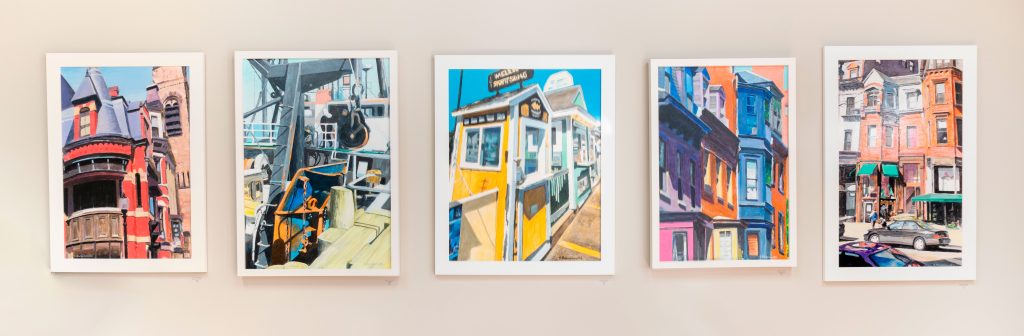 Stephen grew up in Cambridge, MA and spent many of his summers in the Scituate- Marshfield area. He graduated with honors from Tufts University and The Boston Museum School of Fine Arts receiving a B.S. in Art Education to then receiving an M.S. in Art Education from Massachusetts College of Art. He taught for almost 50 years. He was also the art director in the Marshfield School system for many years. The scenes he paints in acrylic are influenced by where he vacationed as a child. He builds up texture with modeling paste and acrylic gel as he seeks to dramatize these settings with overly bright colors as well as exaggerated textures. Between other life activities, it typically takes him about 6 weeks to finish a painting.