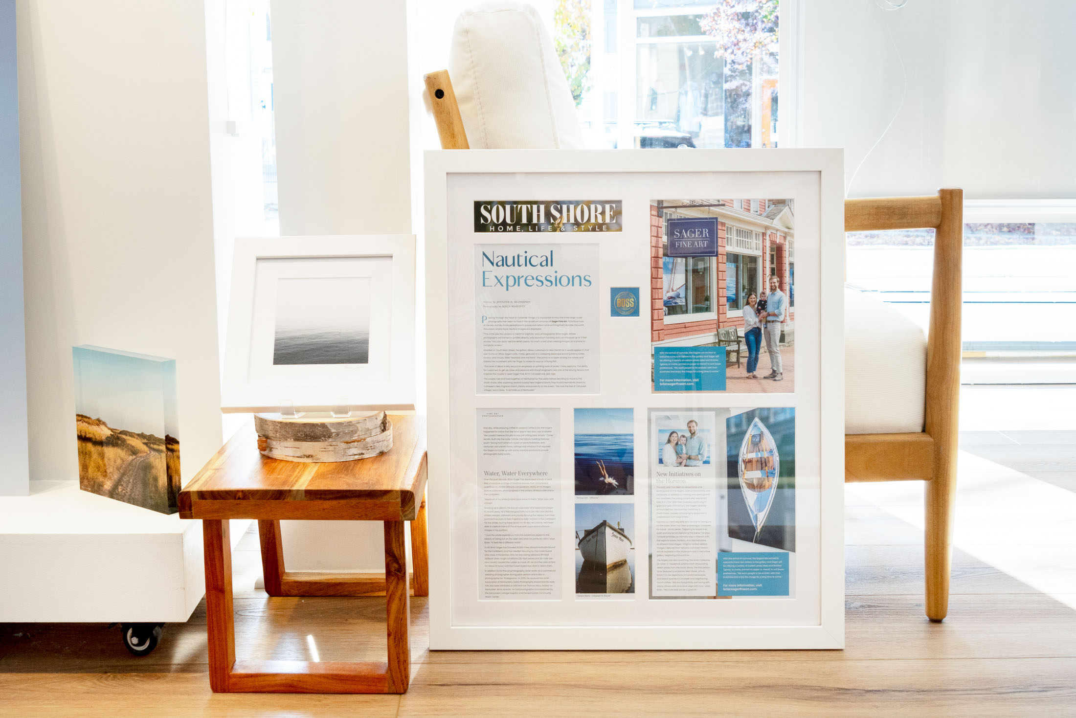 Sager Fine Art Gallery is an artist-owned & operated gallery & showroom in the heart of Cohasset Village. SFA was opened in 2022 by husband & wife team Carey & Brian Sager out of a desire to share Brian’s passion for the sea with others. SFA displays a curated selection of works by Brian Sager, while offering clients a visual of how they can customize their Brian Sager Fine Art photograph. Carey and Brian envision Sager Fine Art as a space for the greater South Shore community to gather and share in their passion for the sea and coastal living.