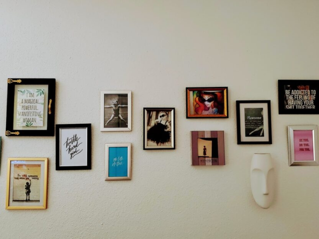 An “eclectic” gallery mixes and matches different styles, trends, textures, and colors. Gallery walls are a fun opportunity to get creative in your home by combining personal artwork and photographs with newfound and repurposed treasures. Infusing color and patterns to your gallery adds a lively layer of sophistication into your space.