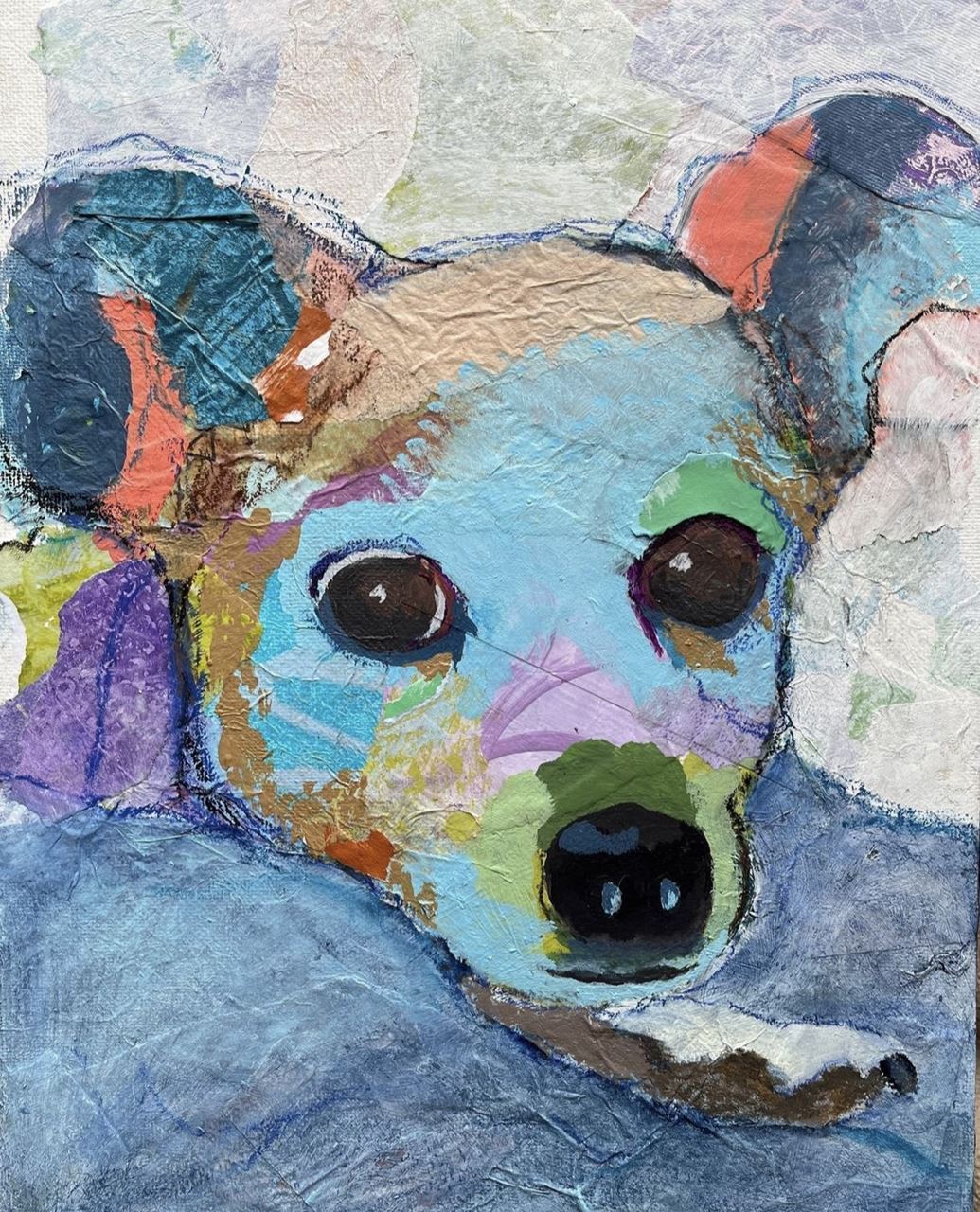 This 1-day workshop is a fun and playful class to loosen up and create an abstract portrait of your pet, or any animal, into a colorful and patterned version using simple paint and collage techniques. Students will learn how to use organic shapes and acrylic paints to create their pet portrait in an intuitive way.