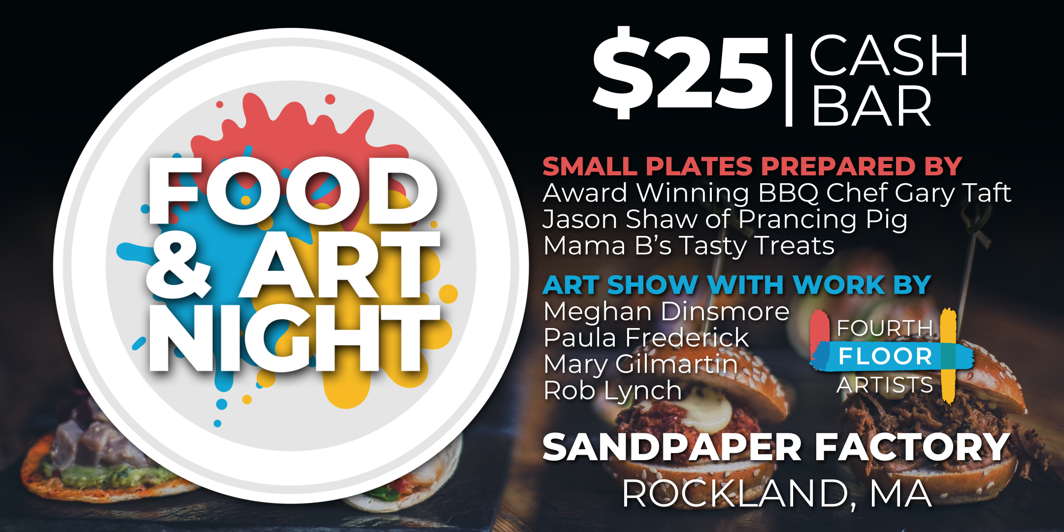 A Night of Delicious Food and Amazing Art On Saturday Feb. 4th in the Gallery on the 4th Floor of the Sandpaper Factory!