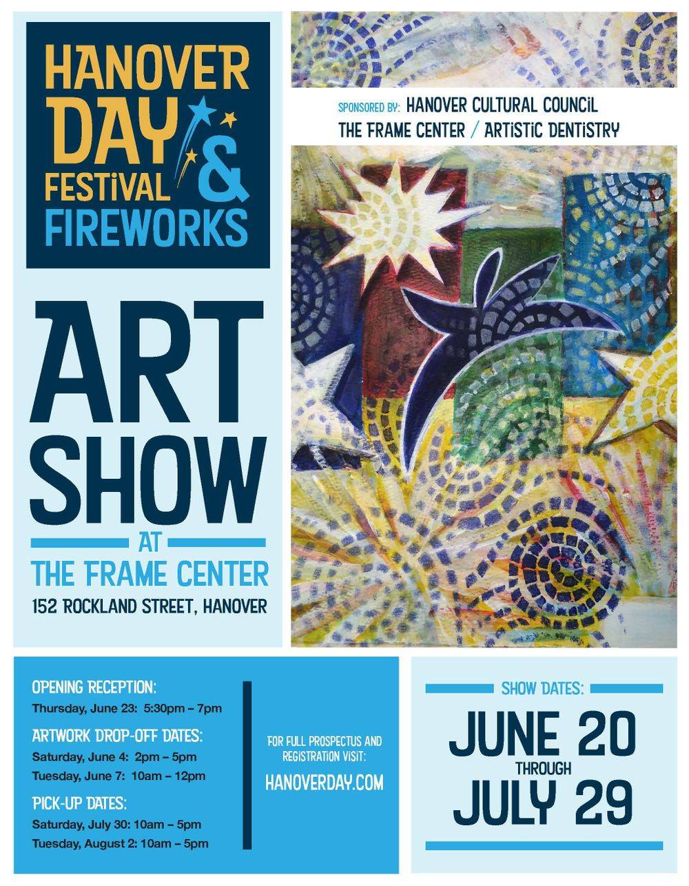 Artwork must be dropped off at the Frame Center: 152 Rockland Street, Hanover.