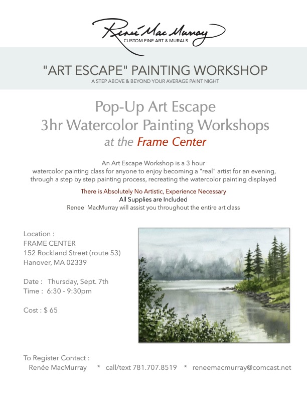 Join Artist Renee MacMurray for a 3hr watercolor class right here at the FRAME CENTER Hanover
