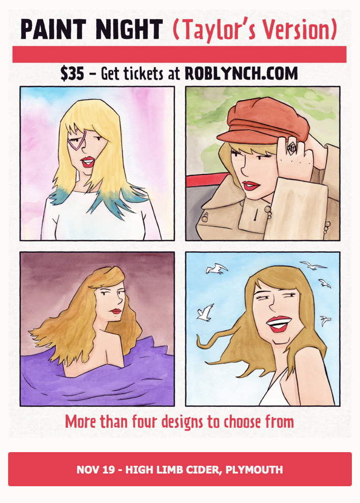 Paint an ink and watercolor portrait of Taylor Swift! Each participant will be provided with a sketch of their chosen version of Taylor on 100% cotton watercolor paper. You will then be guided step-by-step on how to line the design with a brush pen and...