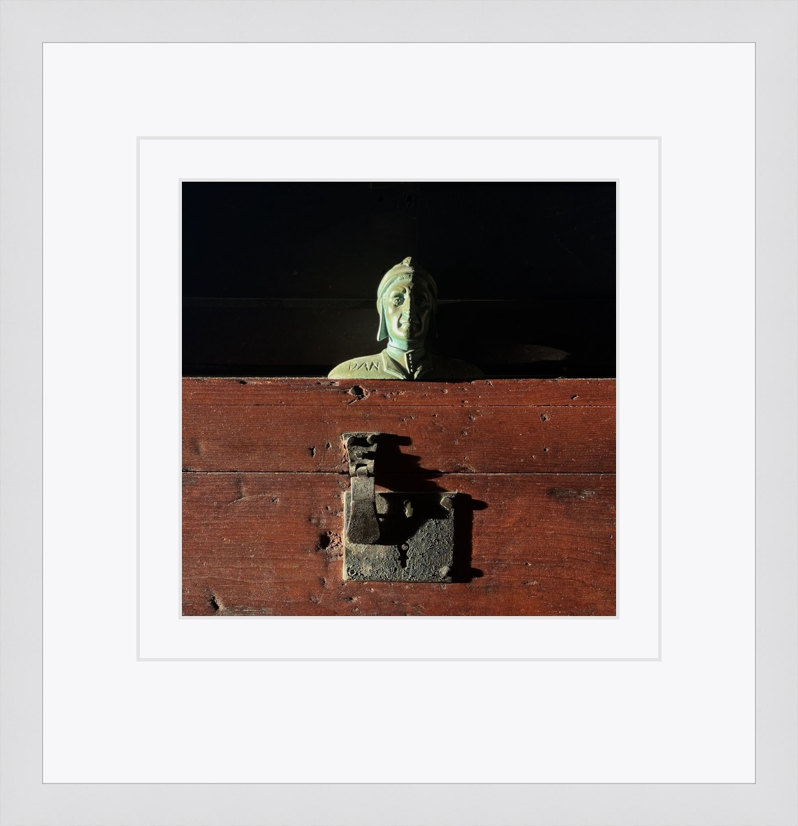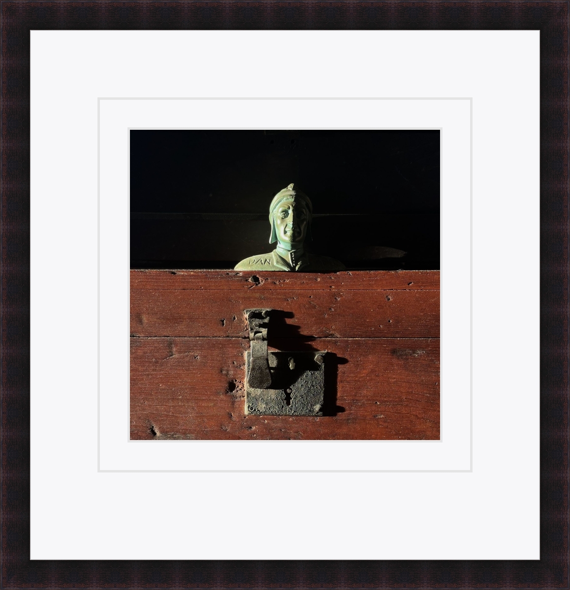 The morning light streams in and rakes across the front of this old family chest just twice a year. For three days in November and another three in January, about a month before and after the winter solstice. Mike likes to place objects there and photograph them, like his grandmother’s Dante paperweight.