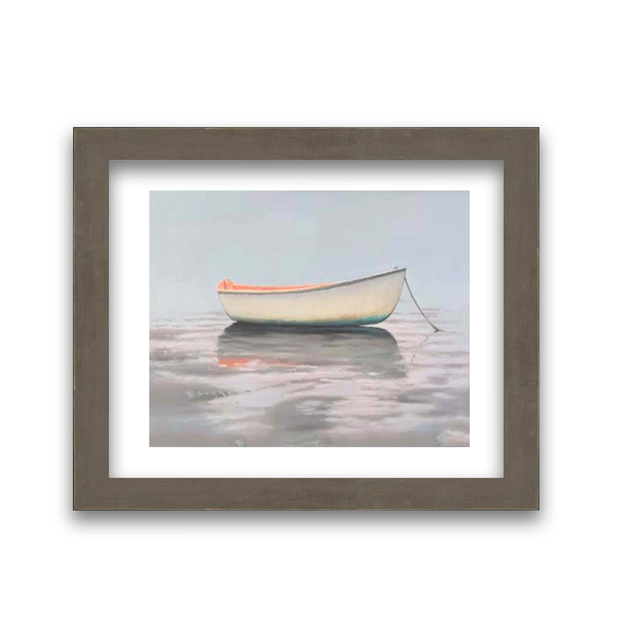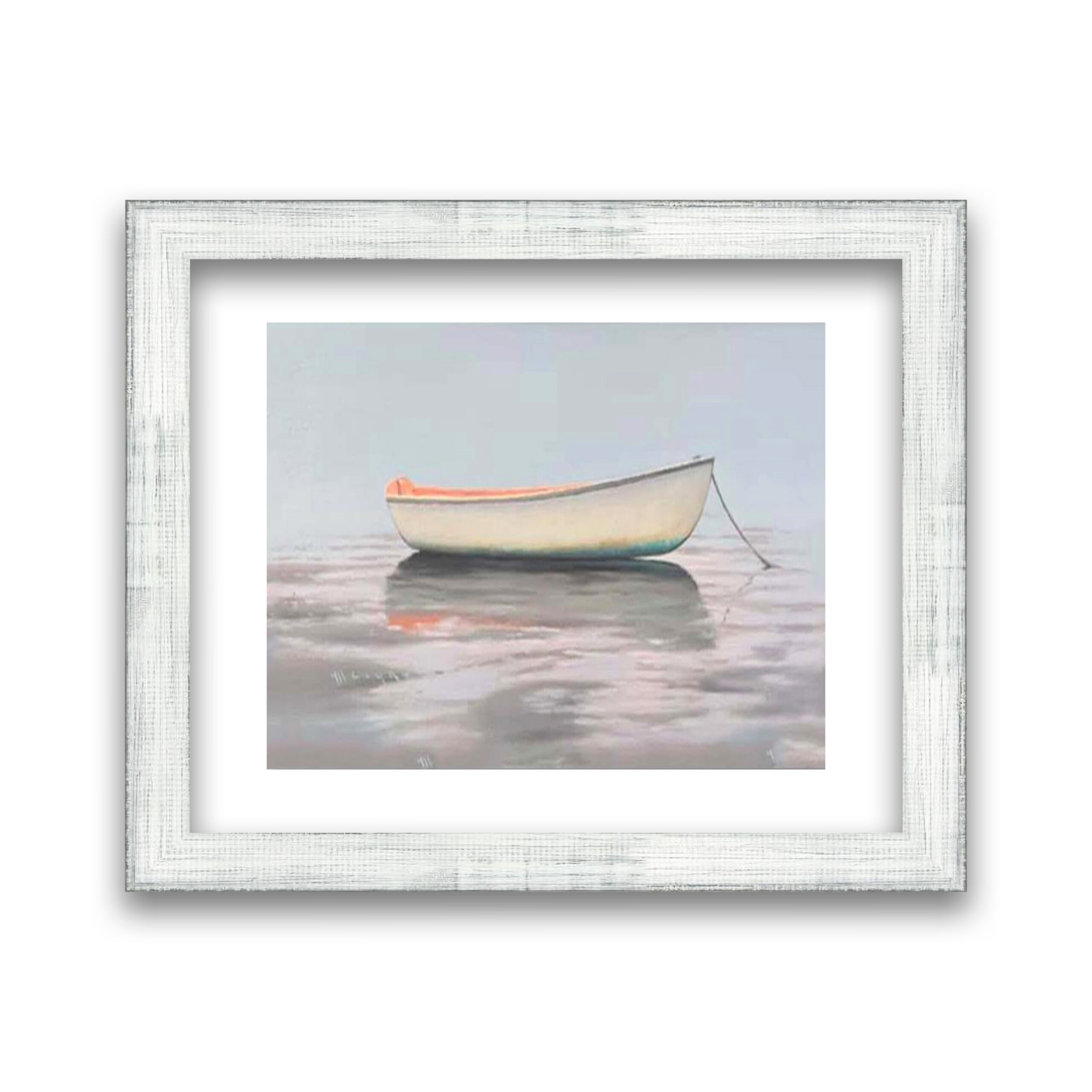 The dory with the most color out of the whole collection, this painting is a testament to the local fishing culture of the South Shore. The contrast between the warm interior of the boat and the faded sea foam color of the bottom are representative of the changes we go through as we get weathered by the tides of life.