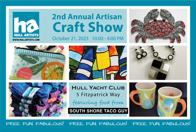 Hull Yacht Club 5 Fitzpatrick Way, Hull, MA, United StatesJoin us for this fabulous craft show featuring 21 artisan crafters. Start your holiday shopping early by buying unique local handmade art for yourself or some one else. While you are shopping you may also enjoy relaxing on the wrap around porch of the Hull...